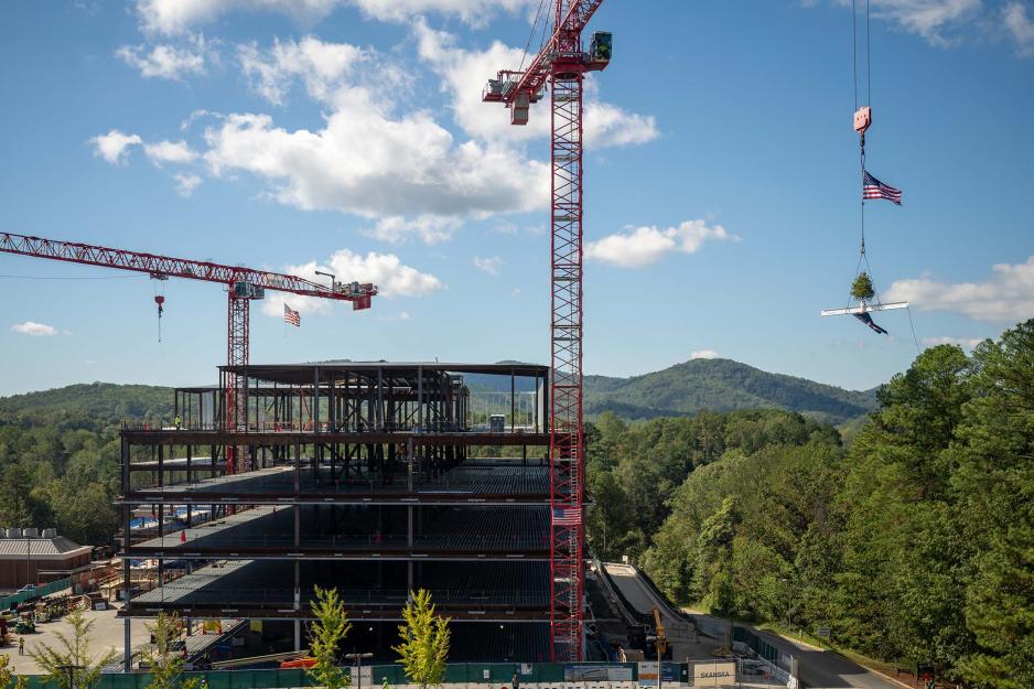 The University holds the “topping off” ceremony for the Paul and Diane Manning Institute of Biotechnology that eventually will encompass 350,000 square feet of laboratory and research space. The Institute reflects the University’s commitment to becoming a biomedical hub for the region and Commonwealth.